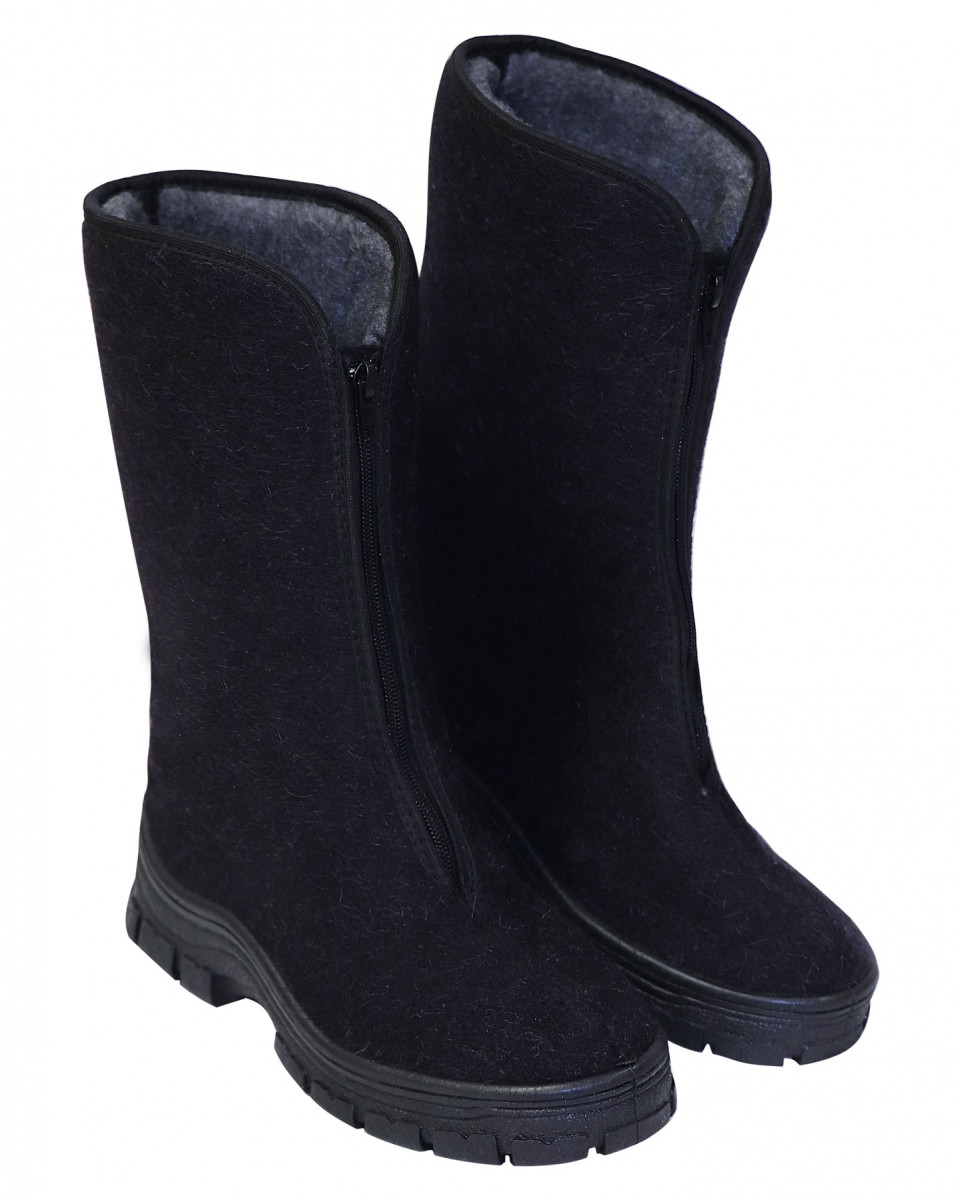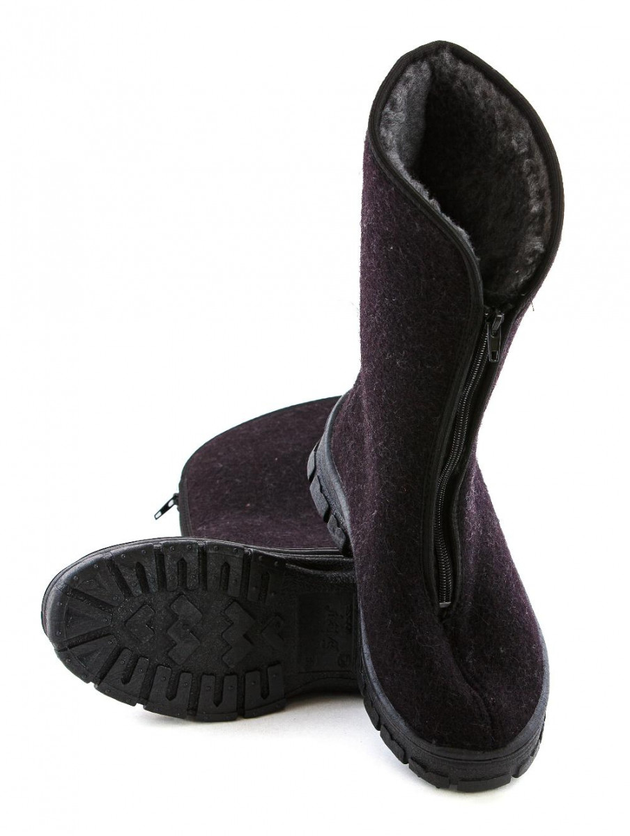 Женская модель. Предназначены для работы в закрытых слабо отапливаемых помещениях, вне помещений в демисезонный период. Верх: натуральное шерстяное сукно. Подошва: морозостойкого вспененного поливинилхлорид (ПВХ), специальный протектор препятствует скольжению. Метод крепления: литьевой. Утеплитель: искусственный мех. Особенности: специальный протектор препятствует скольжению. Высота: 30 см. Рабочая температура: - 18С
