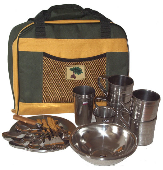 Компактный и легкий набор посуды для 4 человек, идеально подходит для пикника или поездки на природу.