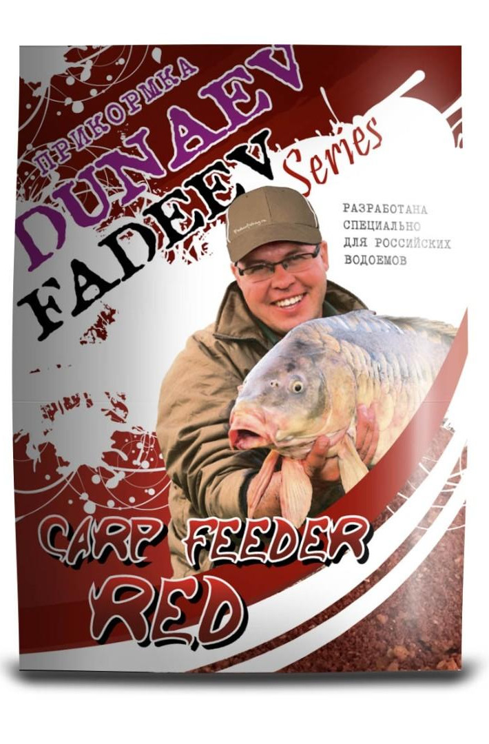 - Красная фидерная прикормка для карпа Фадеев Дунаев | Fadeev DUNAEV первоклассный рыболовный продукт из обширного перечня прикормок «Dunaev», созданный по оригинальной рецептуре известного профессионального рыболова Алексея Фадеева, специализирующего по ловле нехищных видов рыб донными снастями. Прикормка «CARP FEEDER RED» была разработана специально для ловли карпа на коммерческих водоёмах с использованием кормушек открытого и закрытого типов, включая «метод» и «флэт метод». Отличительными особенностями прикормки являются её особый очень привлекательнй для карпов всесезонный красный цвет и, конечно же, многокомпонентный состав, который по праву можно назвать авторским и даже спортивным. Данная прикормка является самодостаточным продуктом, которым можно ловить в чистом виде без использования дополнительных ароматизаторов и усилителей клёва.