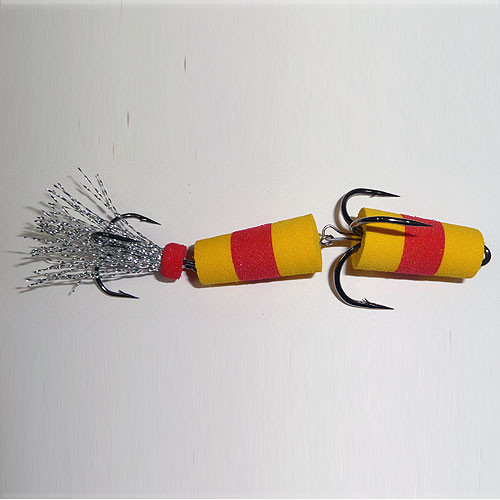 Mодель для ловли судака, щуки и сома методом джига, ловит окуня, жереха и др. Попадаются даже сазан и лещ. Применяется с грузом <чебурашка> весом 10-60 г. Обладает отличной баллистикой, что важно при ловле с берега. При хорошем клёве, рыба садится на большой тройник, при слабом - кусает за хвост и прихватывает тот тройник, что поменьше.