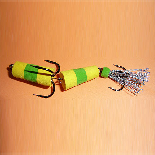 Mодель для ловли судака, щуки и сома методом джига, ловит окуня, жереха и др. Попадаются даже сазан и лещ. Применяется с грузом <чебурашка> весом 10-60 г. Обладает отличной баллистикой, что важно при ловле с берега. При хорошем клёве, рыба садится на большой тройник, при слабом - кусает за хвост и прихватывает тот тройник, что поменьше.