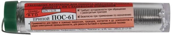 Припой оловянно-свинцовый 12 гр, с канифолью ПОС 61