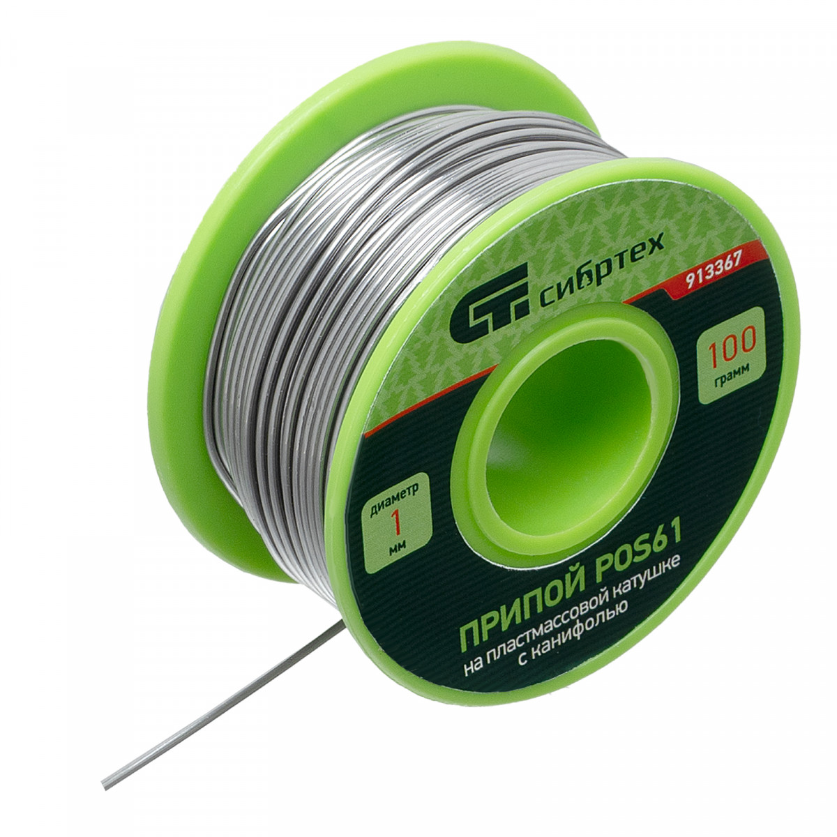 Припой с канифолью, D 1 мм, 100 г, POS61, на пластмассовой катушке Сибртех
