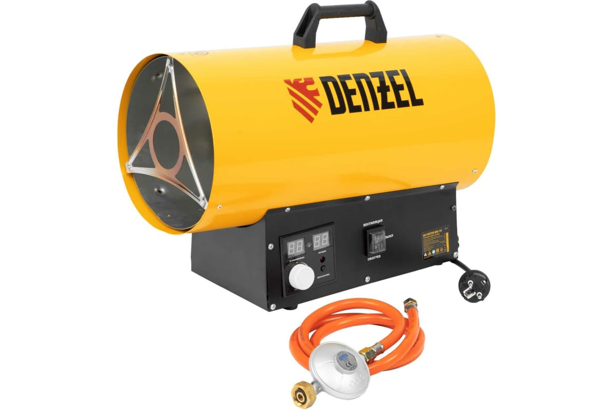 Газовая тепловая пушка Denzel GHG-50, 50 кВт, 1400 м3/ч, пропан-бутан 96480 имеет высокую тепловую мощность и применяется для работы в мастерских, гаражах, строящихся объектах, теплицах, фермах и на складах.Тепловая пушка отличается высокой производительностью 1400 м3/ч при экономичном расходе топлива 3,3 кг/ч и компактных габаритах.