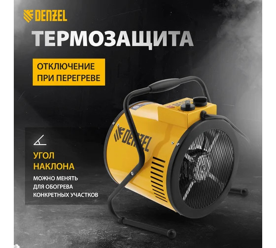 Преимущества Denzel SFH-9000 400 В, 850 м3/ч, 3 режима, вентилятор, 6000/9000 Вт