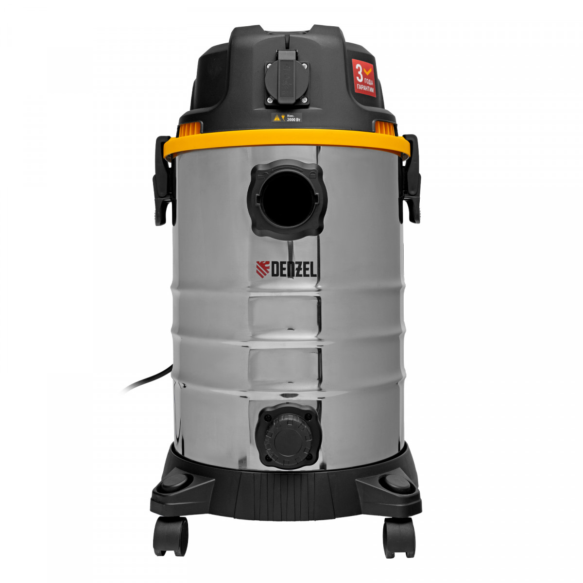 Пылесос строительный Denzel RVC30 28203 мощностью 1400 Вт, с баком объемом 30 л и шлангом длиной 3 м, оснащен розеткой с автосинхронизацией и предназначен для уборки бетонной, кирпичной пыли, опилок, стружки, также предусмотрена функция сбора воды. К пылесосу можно подключить электроинструмент, чтобы минимизировать количество пыли, образующейся в результате пиления, сверления, фрезерования. Техника используется во время проведения строительных и ремонтных работ, будет полезна для поддержания чистоты в мастерской, гараже, производственном помещении.
