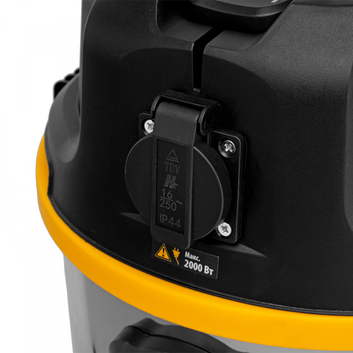 Функция полуавтоматической очистки_Функция выдува_Мешки и фильтры в комплекте_Наличие встроенной розетки для подключения электроинструмента_Возможность сбора жидкости