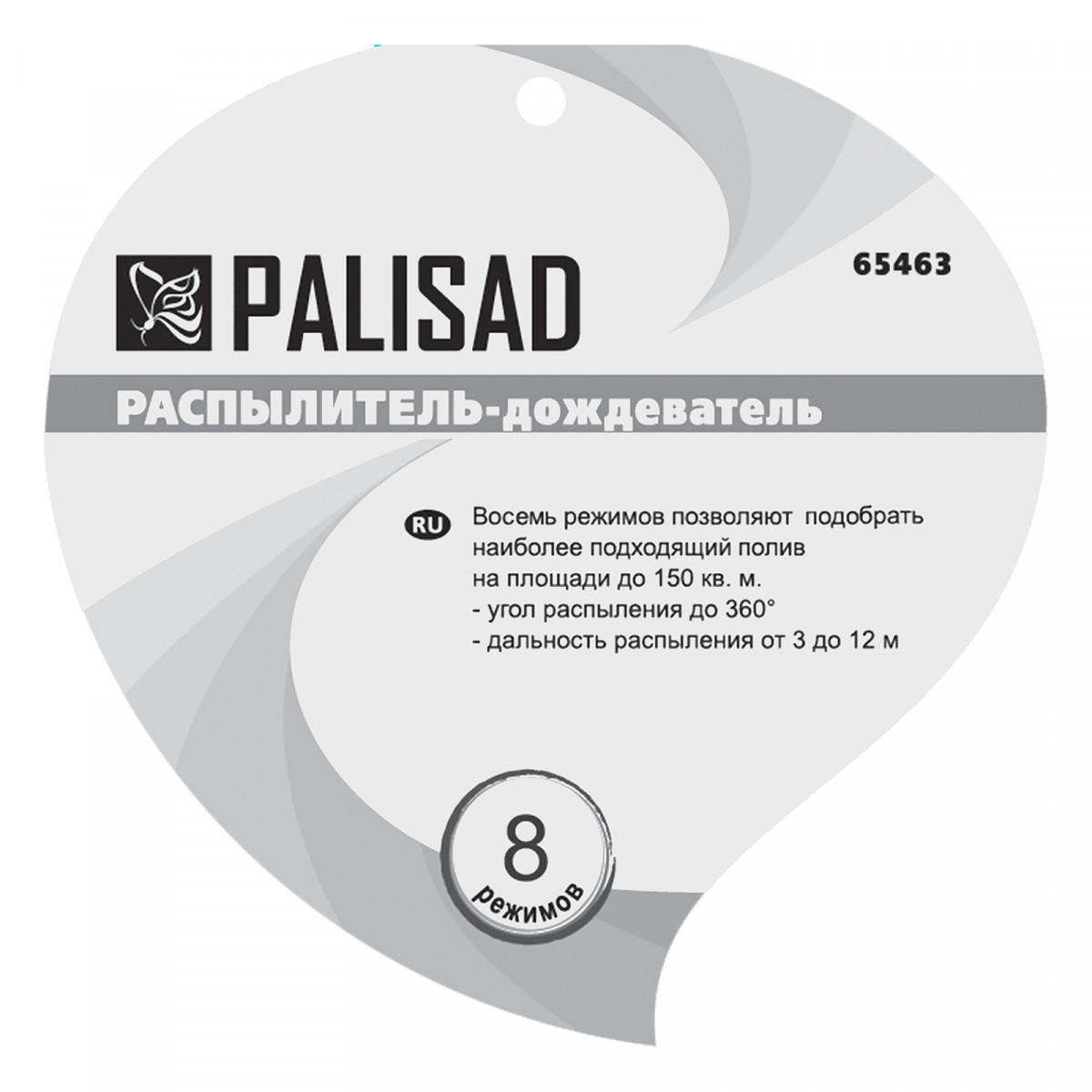Распылитель-дождеватель Palisad 65463 с 8 режимами, на подставке, оптимален для установки на участке среднего размера. Максимальная площадь полива составляет 150 м², максимальный угол полива — 360°, расход воды не превышает 8 л/мин. С помощью устройства можно орошать растения на участках различной формы в саду и на огороде.