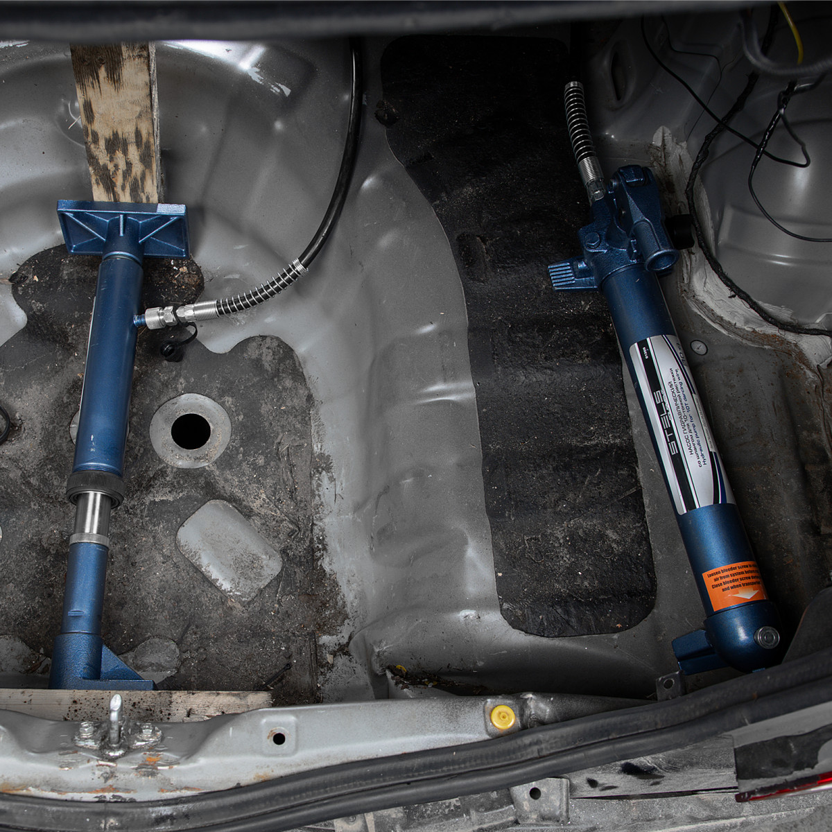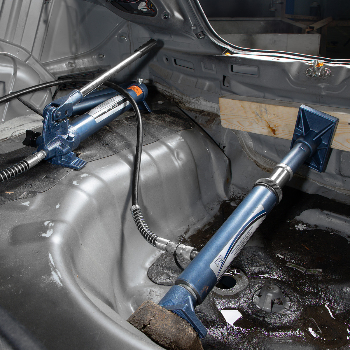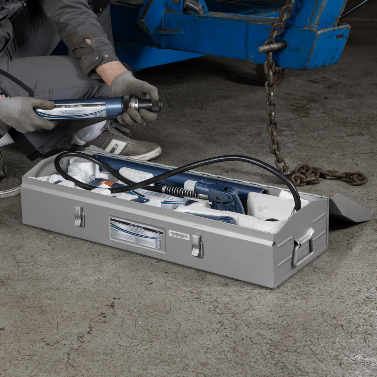 Гидравлическая растяжка Stels 51353 в наборе из 17 предметов, включающем гидронасос, цилиндр, удлинители, адаптер, основание, 7 сменных насадок, и упакованном в металлический кейс, рассчитана на усилие до 10 т и используется для восстановления деформированных металлоконструкций, преимущественно элементов автомобильного кузова. Будет полезна в автомастерской, а также для проведения самостоятельного кузовного ремонта.