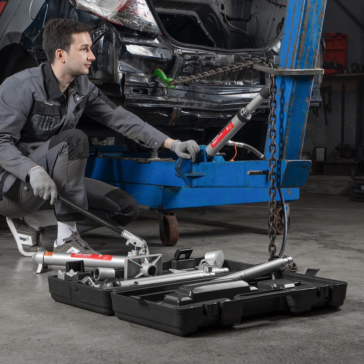 Гидравлическая растяжка Matrix 513405, рассчитанная на усилие до 10 т, входит в набор из 17 предметов — гидронасоса, цилиндра, удлинителя, опорной площадки, адаптера и 7 сменных насадок в пластиковом кейсе. Используется для восстановления геометрии металлических изделий. Можно выбрать оптимальную насадку в зависимости от марки автомобиля, а также области и степени повреждения. Растяжка будет полезна для выполнения кузовных работ и рихтовки металлоконструкций.