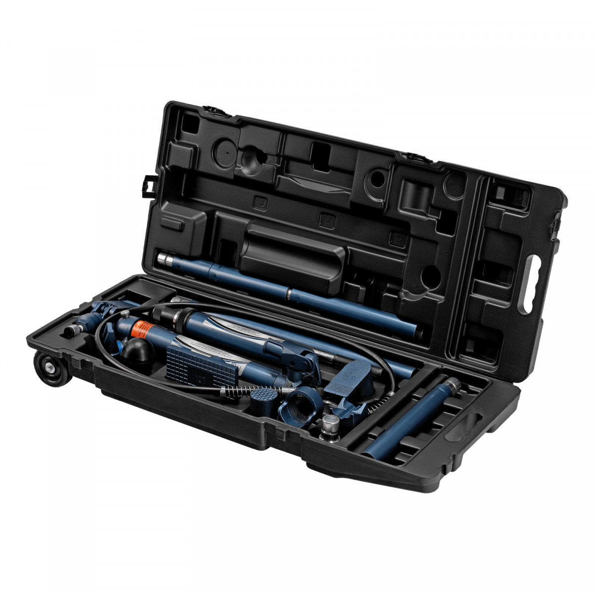 Гидравлическая растяжка Stels 51356, рассчитанная на усилие до 10 т, — компактный набор в пластиковом кейсе на колесах, включающий 17 предметов — цилиндр, гидронасос, адаптер, удлинители, опорную площадку и 7 сменных насадок. Ее используют для рихтовки металлических конструкций и проведения кузовного ремонта. Растяжка эффективно восстанавливает геометрию проемов автомобильных окон и дверей, а также больших участков кузова. Пригодится в автосервисе, будет полезна в гараже.