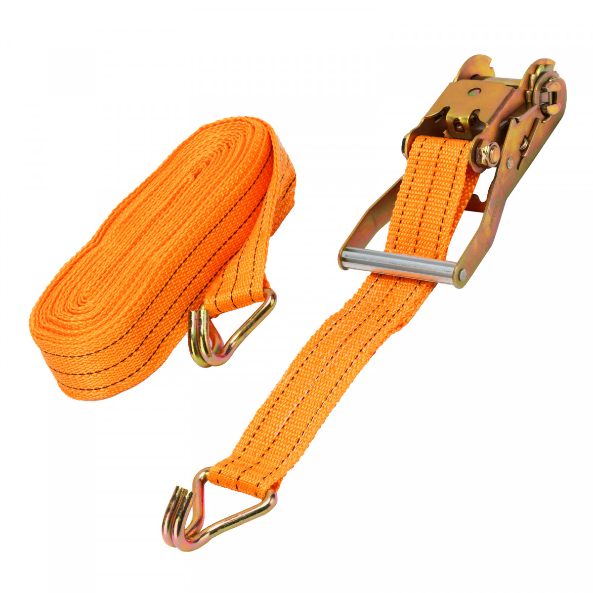 Багажный ремень с крюками Stels 54385 шириной 5 см и длиной 10 м, с храповым механизмом, предназначен для фиксации грузов на решетчатых конструкциях, например, открытых автомобильных багажниках, а также в прицепах. Пригодится для транспортировки различных предметов.
