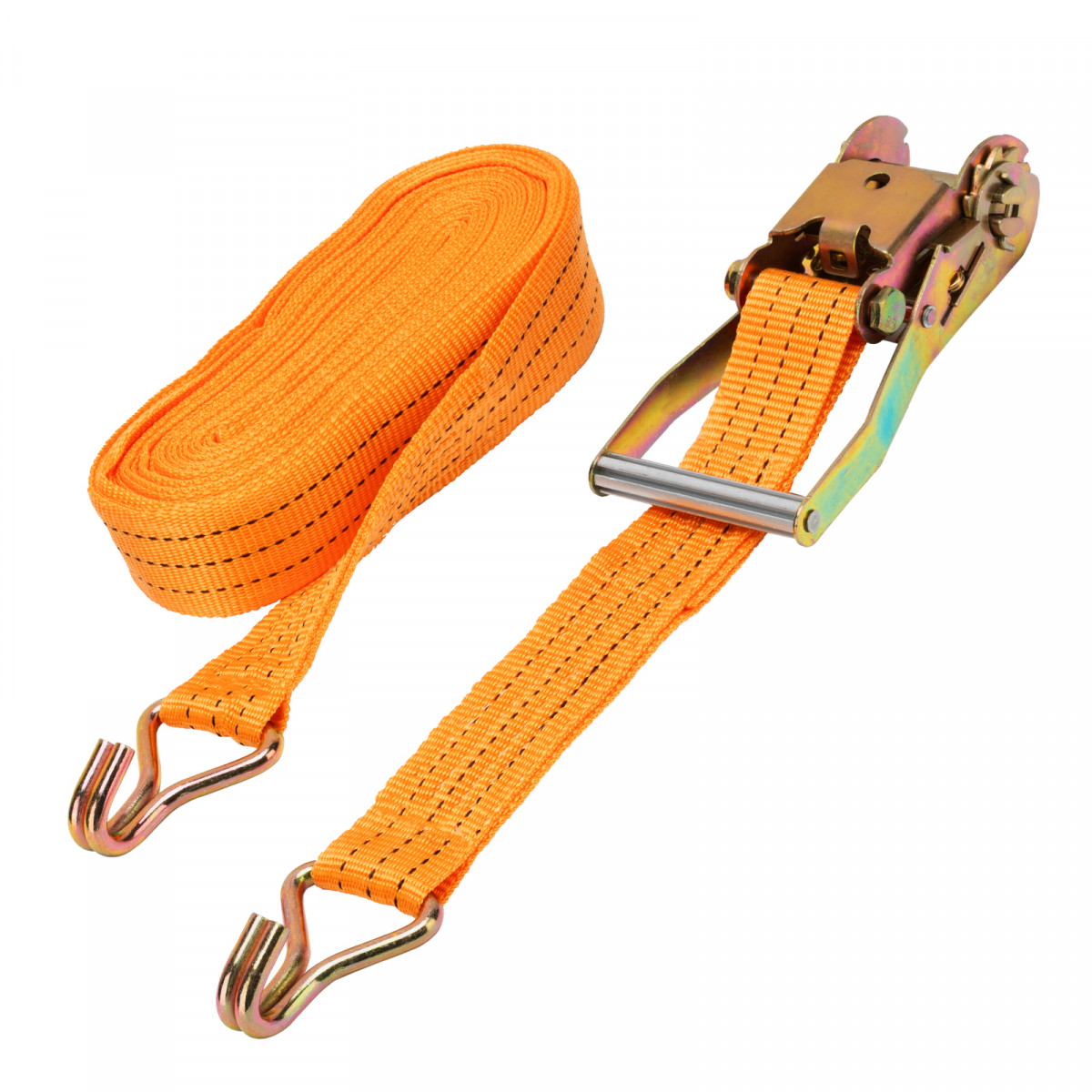 Багажный ремень с крюками Stels 54388 шириной 5 см и длиной 12 м, с храповым механизмом, предназначен для фиксации грузов на решетчатых конструкциях, например, открытых автомобильных багажниках, а также в прицепах. Пригодится для транспортировки различных предметов.