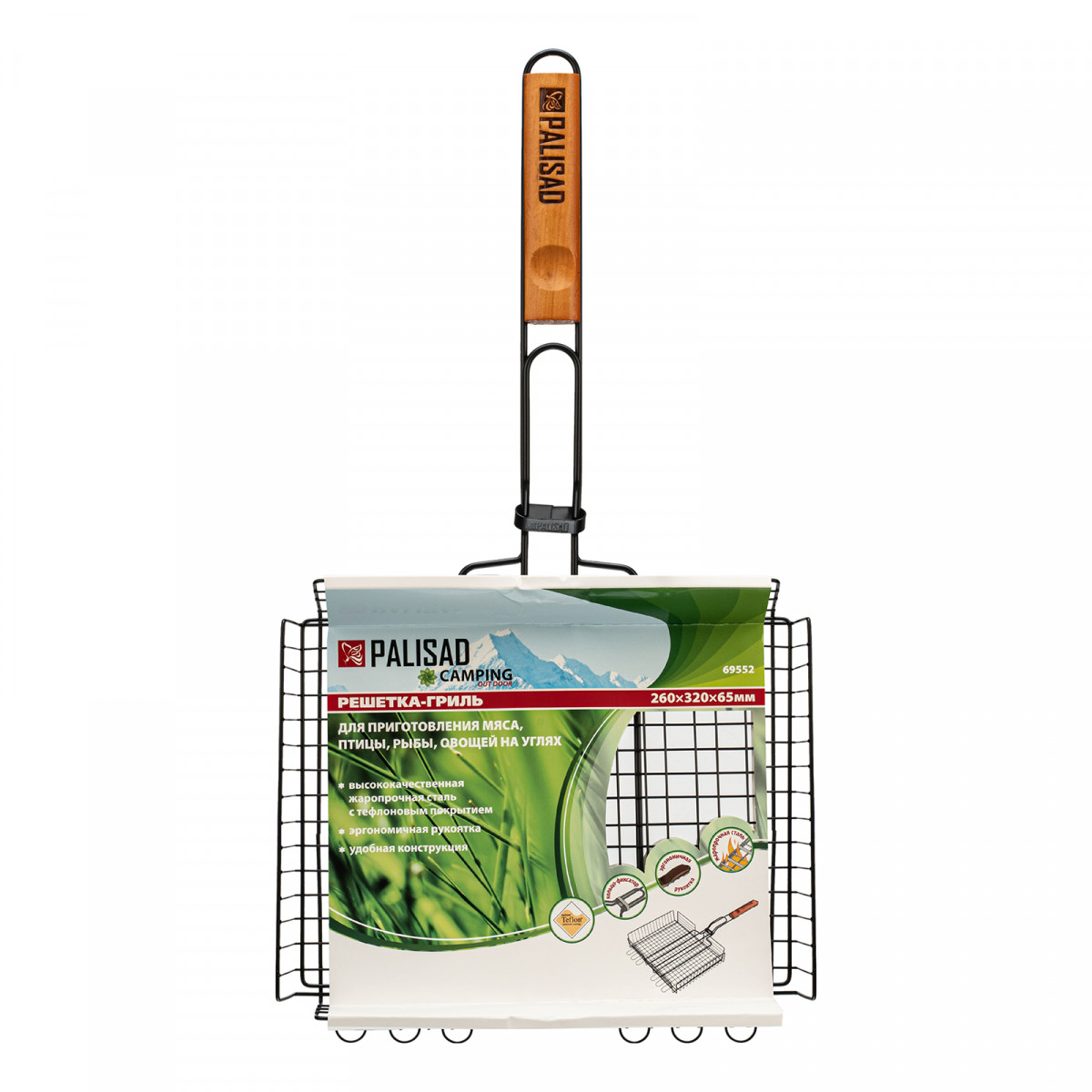 Объемная решетка гриль Palisad Camping 69552 размером 260 х 320 х 65 мм, с антипригарным покрытием, повышает удобство приготовления еды в мангале. Благодаря объемной конструкции решетку можно регулировать по высоте для качественного приготовления крупных кусков рыбы, мяса и даже целой тушки курицы без вытекания сока.