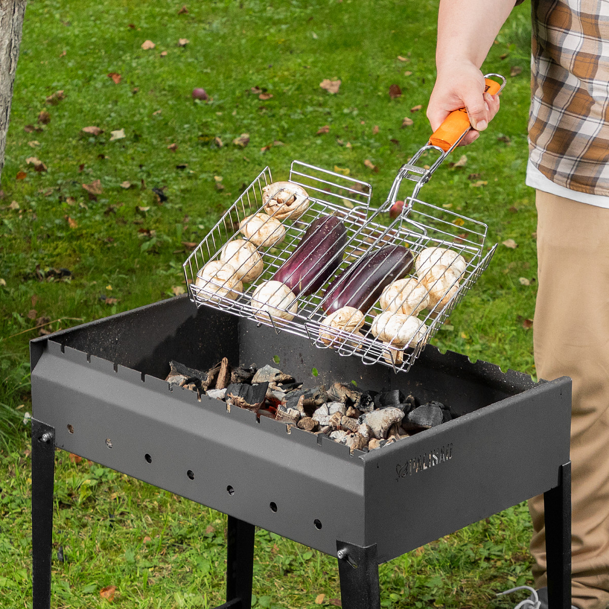 • За счет увеличенных опорных стержней решетка надежно фиксируется на мангале, а для жарки используется вся рабочая площадь.