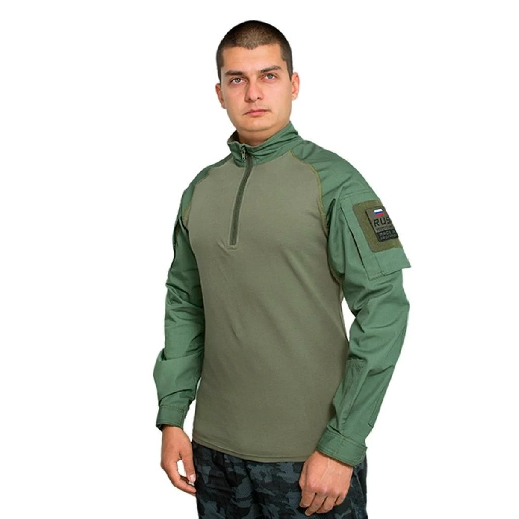 Тактическая рубашка — это особый вид одежды военнослужащих и бойцов спецподразделений выполняющих свои миссии в условиях высоких температур воздуха и влажности.Тактическую рубашку удобно носить, как повседневную одежду, так и под бронежилетом или разгрузочной системой, ведь влагоотводящая ткань изделия нормализует микроклимат под одеждой бойца, и в тоже время, защищает руки от солнечных лучей и от мелких механических травм.Особенности: основа рубашки сшита из мягкой влагоотводящей ткани, которая плотно облегает фигуру, отлично проводит воздух и отводит влагу от телаРукава же выполнены из прочной ткани Rip-StopМанжеты рукавов можно регулировать велкро-липучкой.На груди расположена молния, замочек которой прячется в специальный кармашек во избежания натирания кожи;Наплечные вертикальные карманы с клапанами на молнии для удобства закрываются сверху внизУсиление на локтях.Ткань Смесовая Rip-StopСостав: 35% Хлопок; 65% ПЭ.