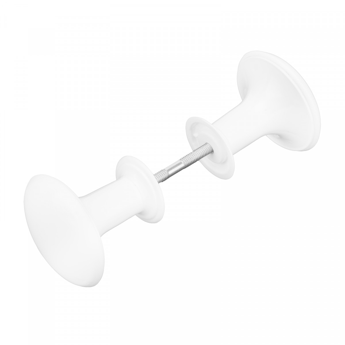 Белая пластиковая ручка-кнопка Металлист РК1 91587, 5 шт. в упаковке, используется для установки на межкомнатную дверь. Монтируется на полотно с двух сторон, облегчает открывание и закрывание двери. Дверную ручку можно установить в служебных, хозяйственных и жилых помещениях.