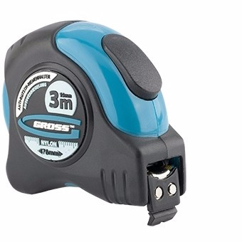 Рулетка 3 м x 19 мм GROSS Schlagfest 31111 имеет ударопрочный корпус и ленту с нейлоновым покрытием, что дает гарантию длительной эксплуатации. Благодаря зацепу, можно быть уверенным, что не произойдет досадного соскальзывания при измерении.