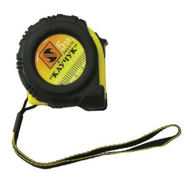 Рулетка с фиксатором Каучук 5м Энкор 14207 - инструмент высокой точности, применяющийся при строительстве, ремонте или в быту. Износостойкое покрытие ленты прослужит долгие годы. Корпус инструмента с резиновой облицовкой устойчив к ударам,  наделен петлей для подвеса. Лента оканчивается крючком на трех заклепках облегчить проведение измереий. Фиксатор тормозит ленту на нужном значении и быстро ее скручивает.