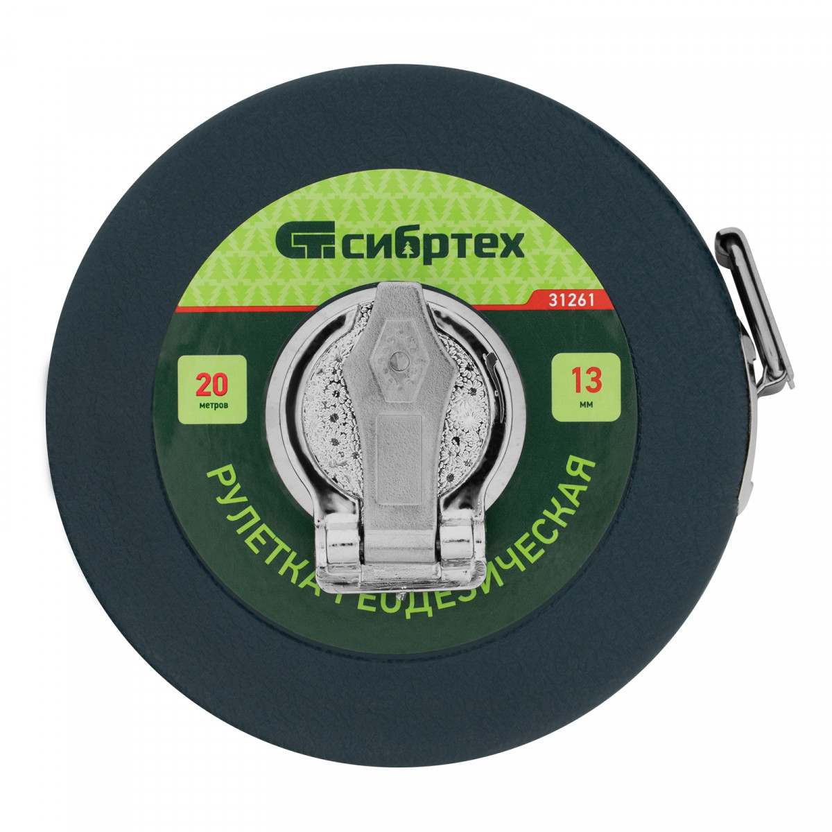 Рулетка геодезическая 20 м х 13 мм, закрытый корпус, фибергласовая лента Сибртех