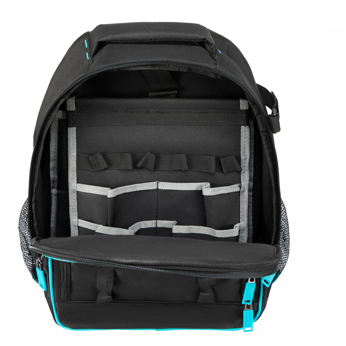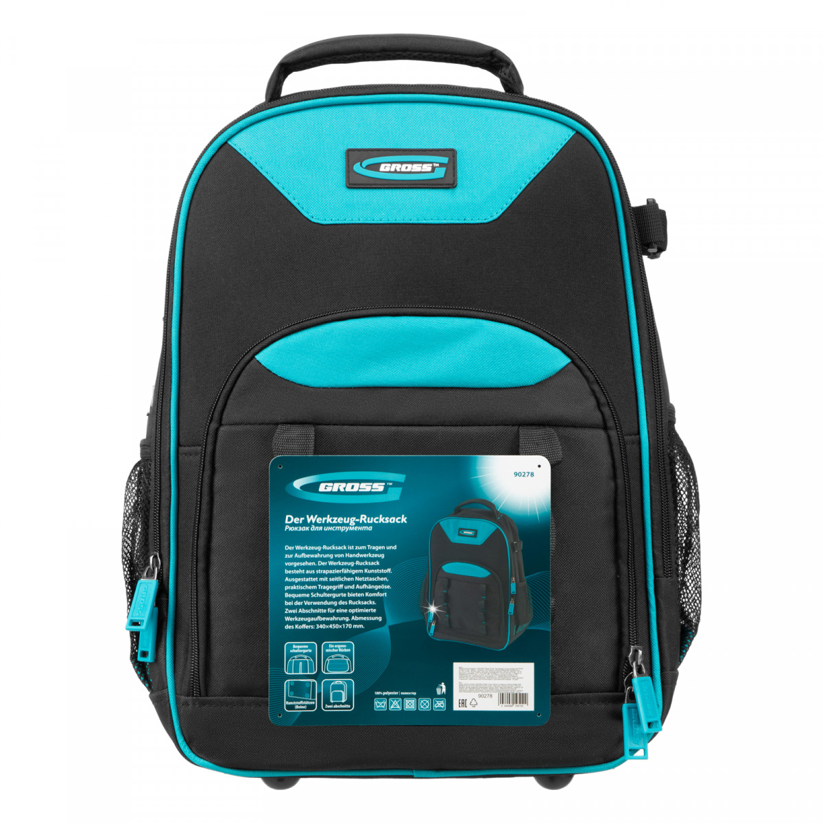 Рюкзак Gross 90278 габаритами 450 х 340 х 170 мм, с 13 карманами, предназначен для транспортировки ручного и электроинструмента. Изготовлен из высокопрочного синтетического полиэстера плотностью 600 D. Оптимален для использования на выездных работах.