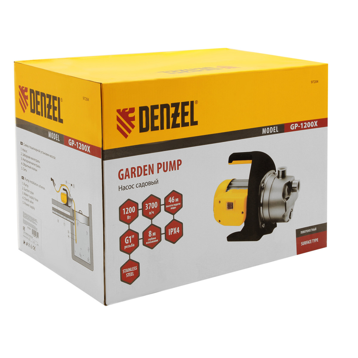 Садовый поверхностный насос GP1200Х, 1200 Вт, 3700 л/ч, подъем 46 м, нержавейка Denzel