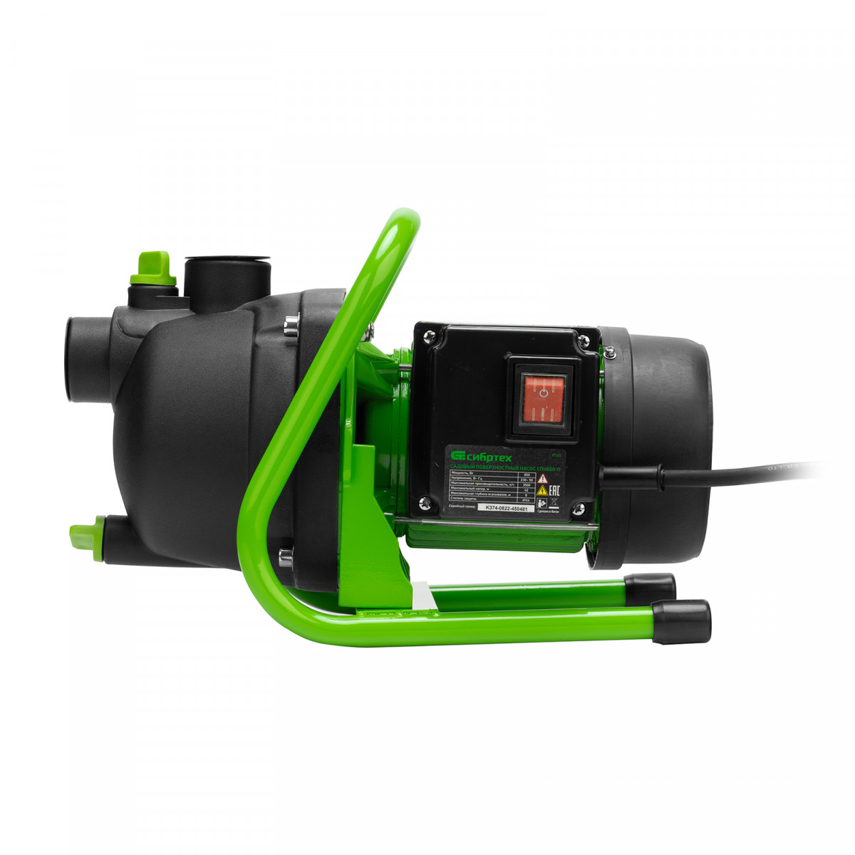 Садовый поверхностный насос Сибртех СПН850-П 97245 мощностью 850 Вт и производительностью 3500 л/ч, с корпусом насосной части из пластика, может забирать воду с глубины до 8 м из колодцев, водоемов и накопительных емкостей, создавая напор до 42 м. Используется для подачи воды на кухню, в душ или баню загородного дома, легко справляется с подачей воды на верхние этажи. Применяется также в системах орошения.