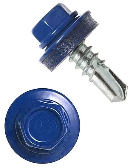 Саморез 4,8*50 сверло,гол.шестигр.с шайбой, RAL 5002 (синий) Pront