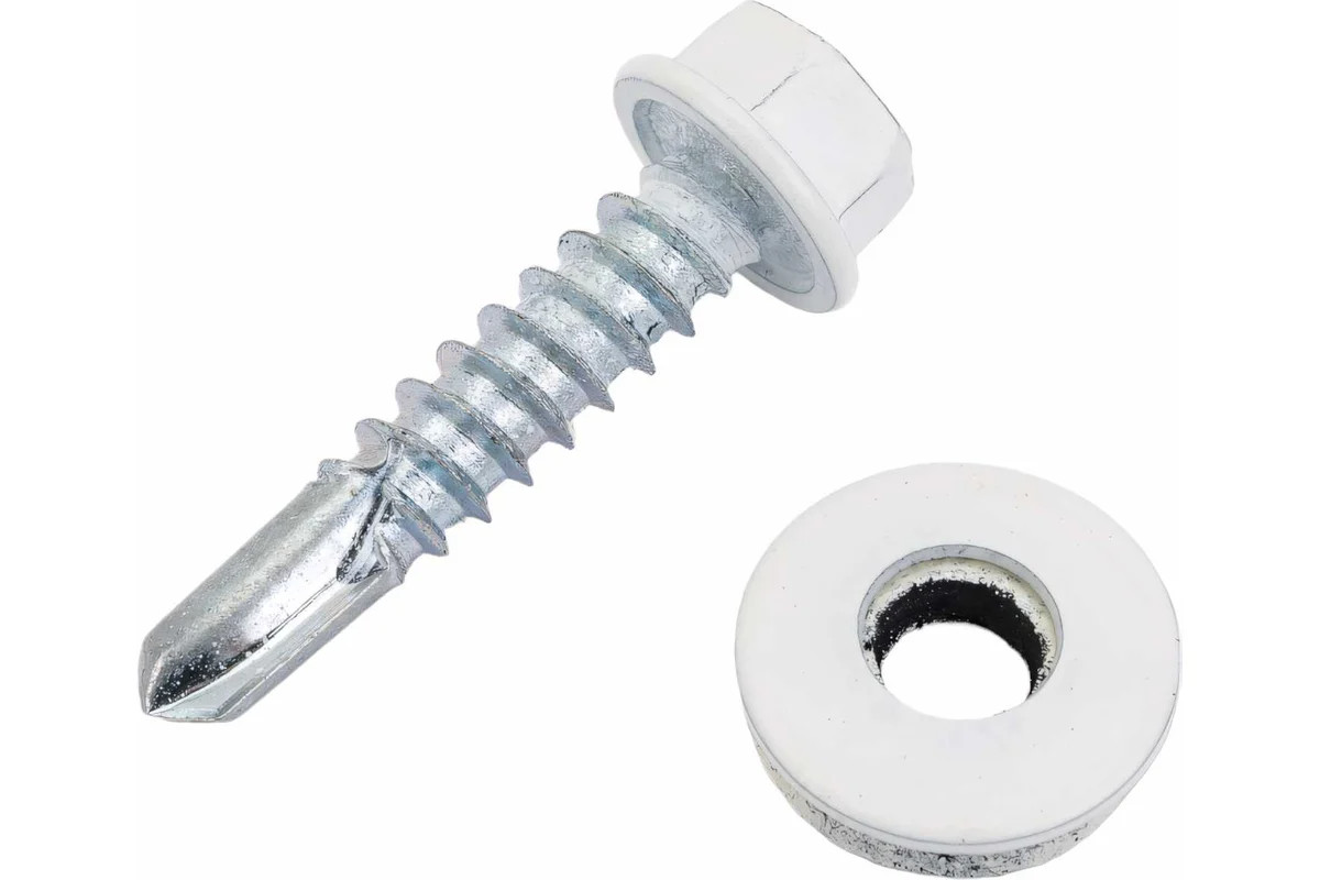 Шестигранная головка с шайбой обеспечивает надежное крепление элементов кровли.