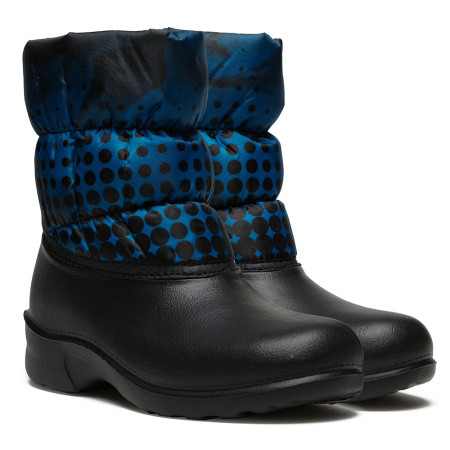 Полусапожки женские Дюна из зимней эластичной полимерной композиции EVA DU-Care. Верхняя часть выполнена из текстиля с водоотталкивающей пропиткой. Подкладка состоит из полиэфирного ворсового полотна, которое создаёт надёжный барьер для проникновения холодного воздуха. Воздушные пространства, которые образуются за счёт отстрочки с помощью резинки, создают барьер для проникновения холодного воздуха. Сноубутсы практичные, удобные и комфортные. Стильный авторский принт позволяет создать индивидуальный образ. Предназначены для повседневных прогулок в холодную погоду и для активного отдыха. Бережная стирка при температуре 30 градусов.
