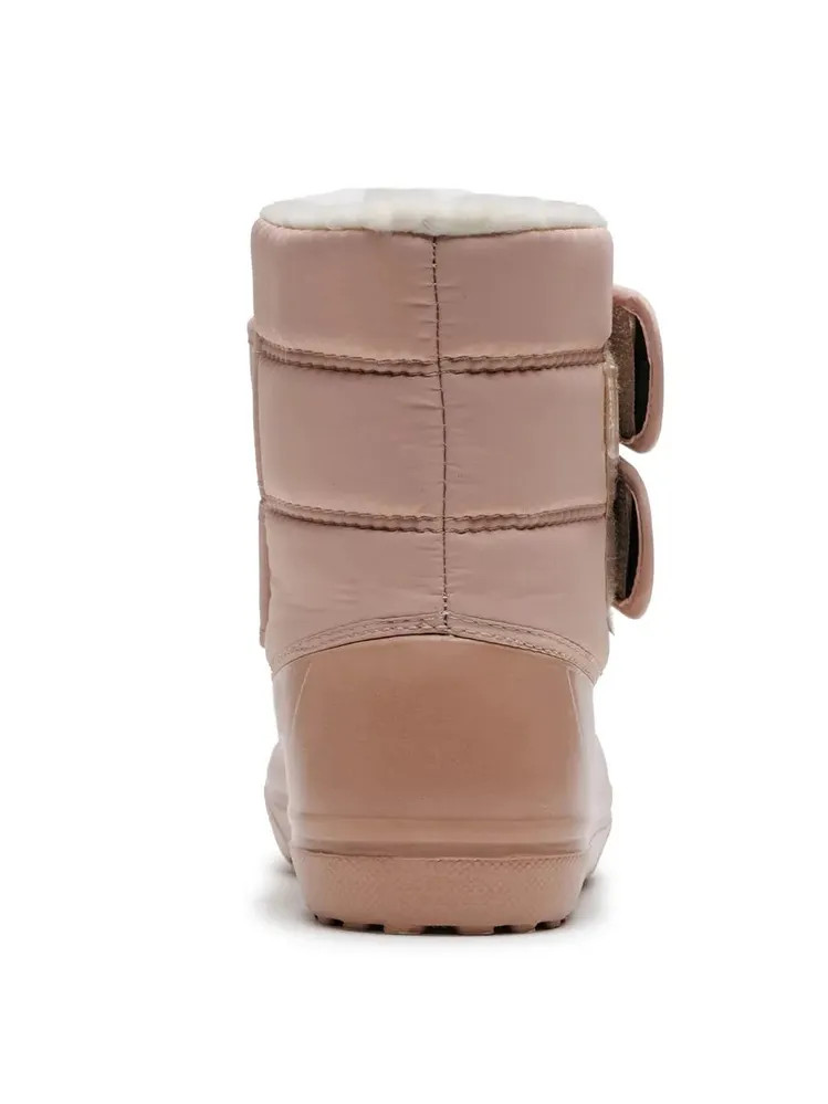 Технология: бесшовное монолитное литьё, прошивка тканевого верха Материал верха: оксфорд с водоотталкивающей пропиткой Материал подошвы: EVA DU-Care Материал подкладки: шерсть 30% Утеплитель: вшитый Состав: мех с натуральной шерстью, не менее 30% Температура эксплуатации до -15°С