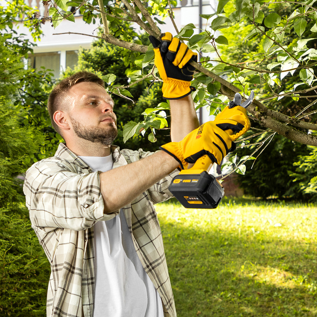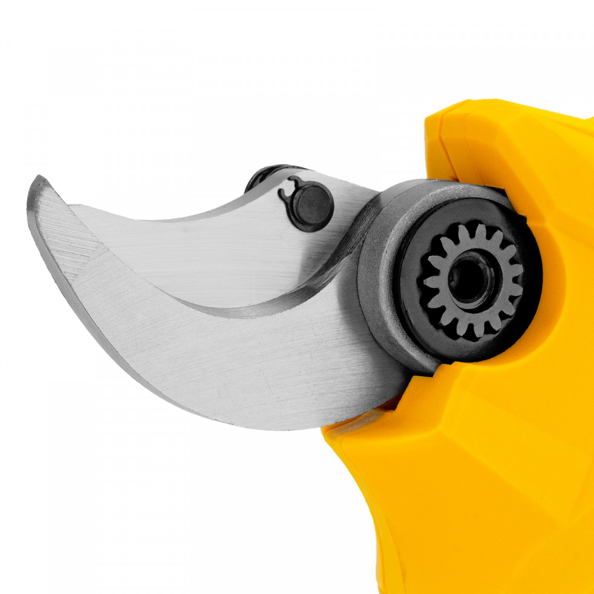 Аккумуляторный секатор Denzel CP-30-0 предназначен для срезания ветвей толщиной до 30 мм. Станет незаменимым помощником для владельцев загородных домов, дач и плодовых питомников. Компактный бесщеточный электродвигатель обеспечивает эффективную работу инструмента. Секатор работает от аккумулятора, поэтому будет полезен при работе в труднодоступных местах и отдаленных участках сада.