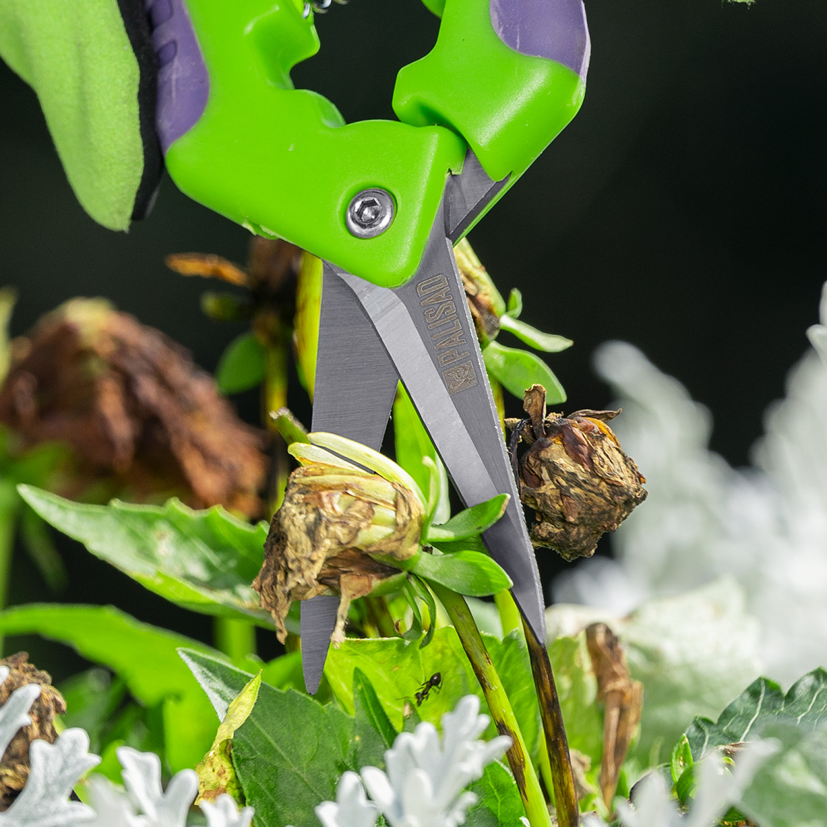 Цветочный секатор для бонсай и топиария Palisad 60499 длиной 160 мм, с двухкомпонентными рукоятками, срезает молодые побеги и стебли толщиной до 10 мм. Движущиеся в параллельных плоскостях лезвия обеспечивают ровный аккуратный срез. Регулировочный винт позволяет контролировать плотность смыкания лезвий. Инструмент применяется для ухода за цветами, оформления крон бонсай и топиарных скульптур. Подходит также для использования в хозяйственных целях — разрезания картона, бумаги, ткани, подвязочного материала. Секатор будет полезен на дачном участке.
