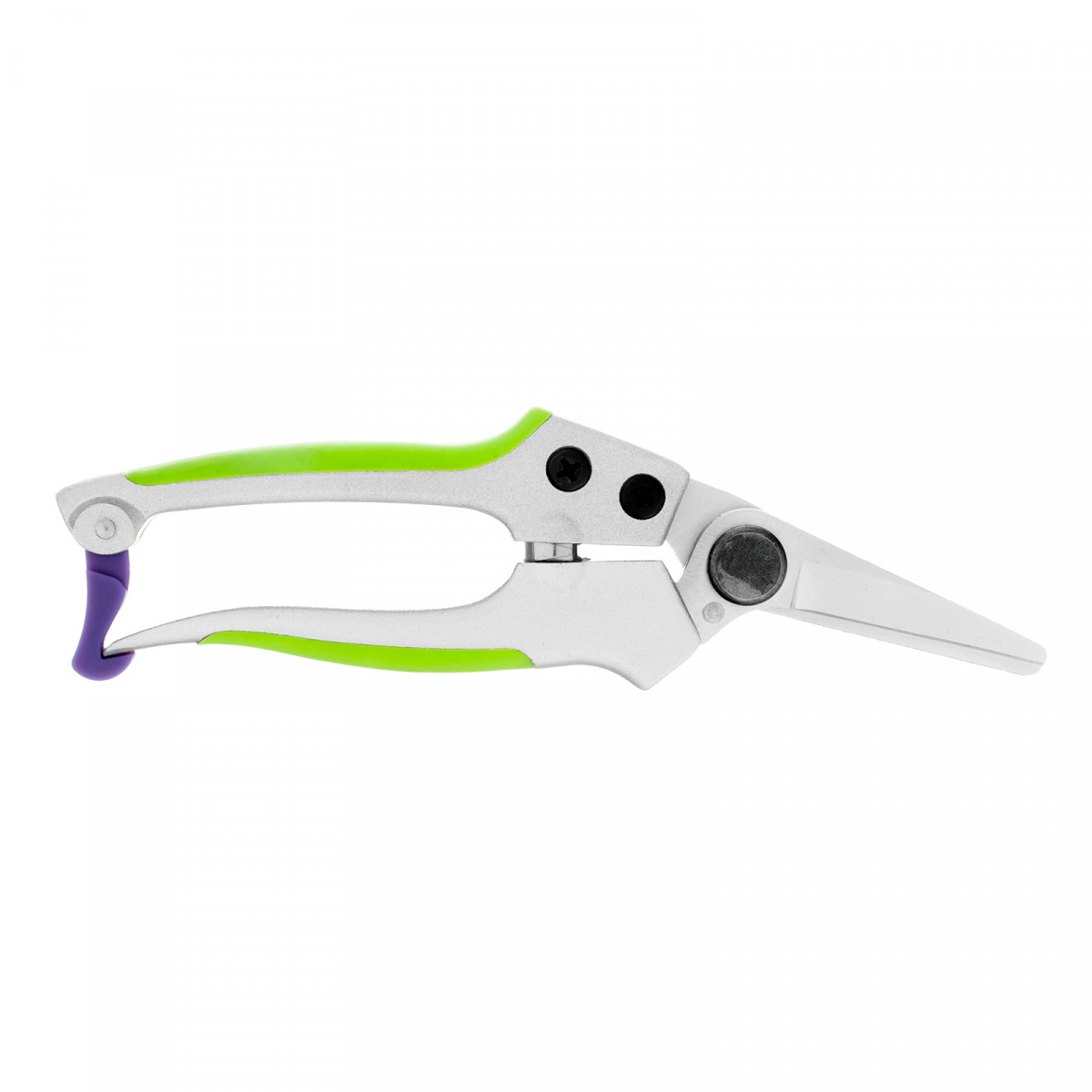 Цветочный секатор Palisad 60491 длиной 180 мм, с металлическими обрезиненными рукоятками, будет полезен дома, на даче, в саду и огороде. При помощи расположенных в параллельных плоскостях лезвий быстро и аккуратно срезает молодые побеги и стебли толщиной до 10 мм. Подходит для оформления крон бонсай и создания топиариев. Пригодится также в домашнем хозяйстве — им удобно резать картон, бумагу, ткань, подвязочный материал. Режущие кромки с прецизионной заточкой обеспечивают легкость реза, плотность смыкания лезвий регулируется при помощи крепежного винта.