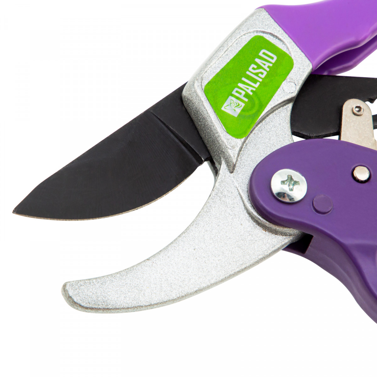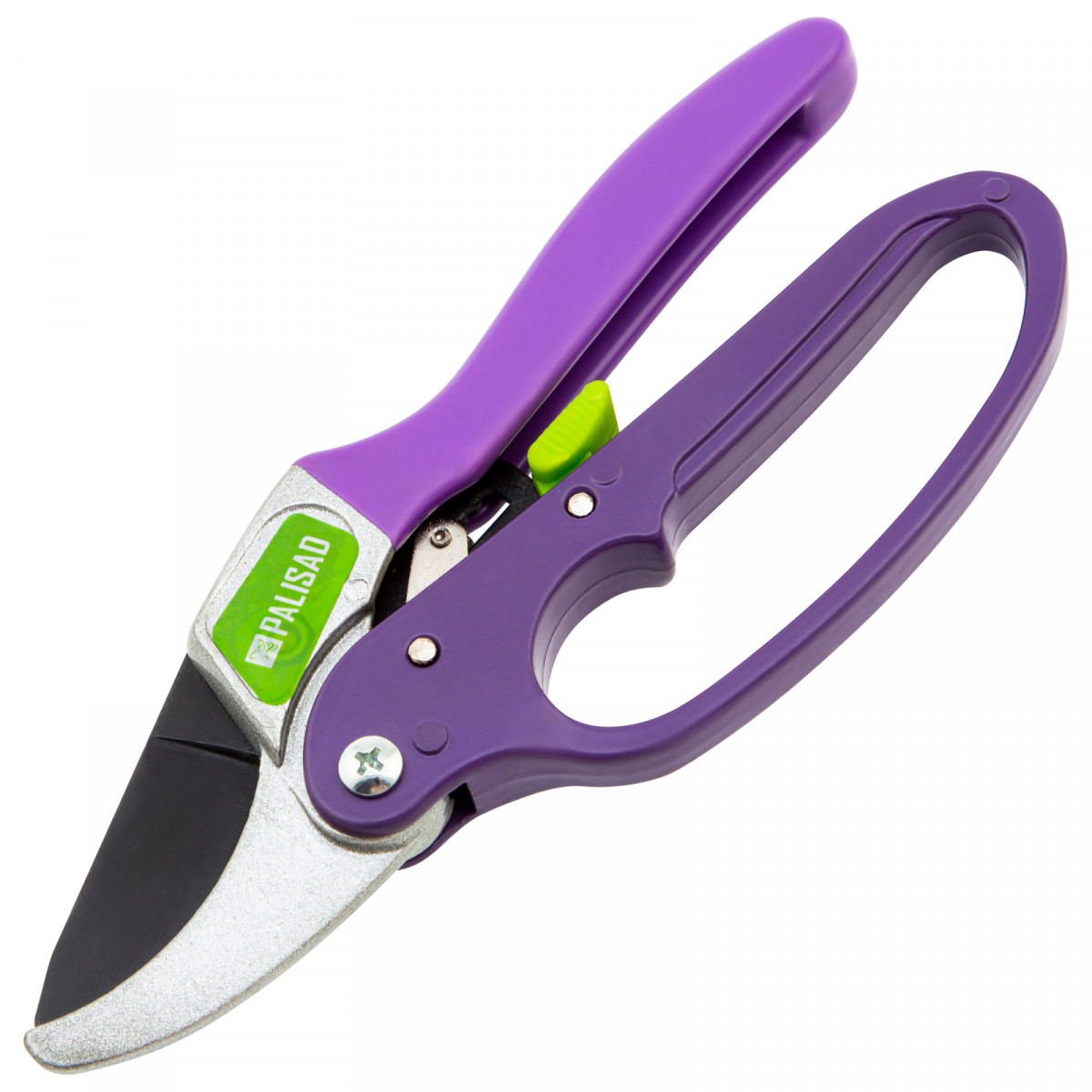 Секатор прямого реза, 200 мм, храповой механизм, металлические обрезиненные рукоятки, Palisad