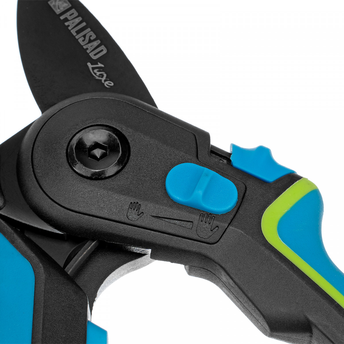 Секатор с наковальней, 220 мм, регулировка захвата, трехкомпонентные рукоятки, Luxe, Palisad