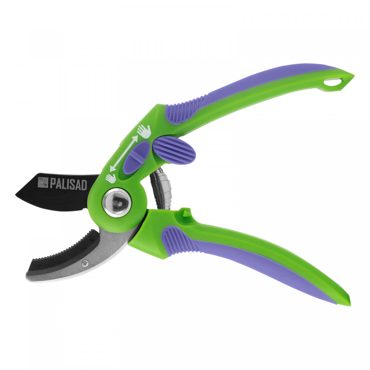 - Регулировка величины захвата — переключатель «большая-малая рука» позволяет устанавливать ширину раскрытия лезвий.