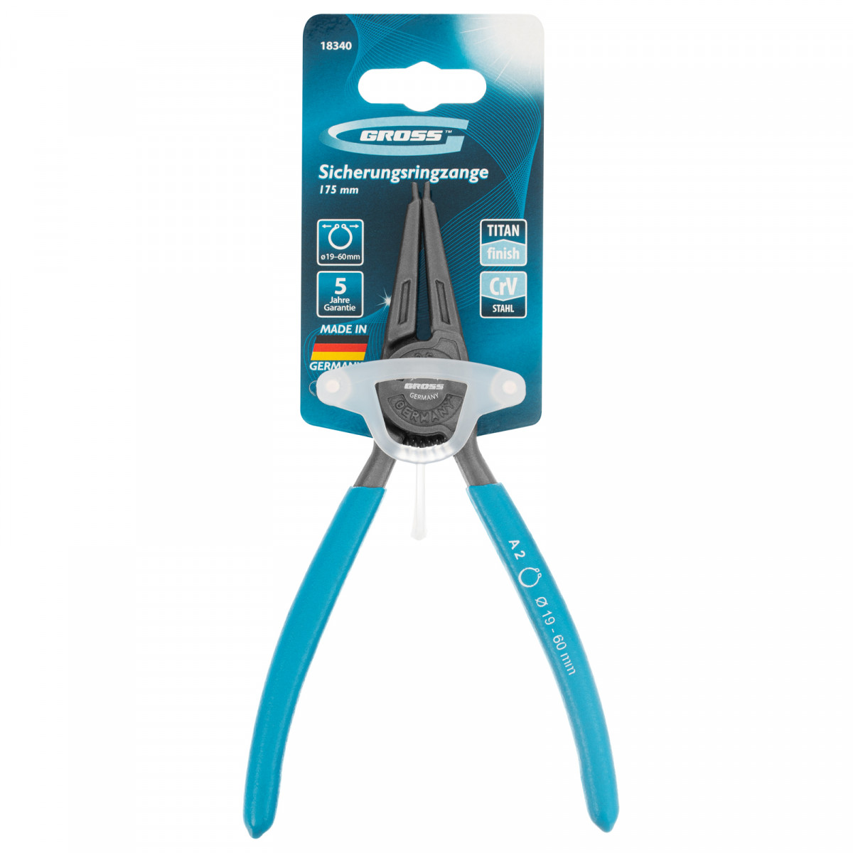 Съемник Gross 18340 длиной 175 мм, с прямыми губками, предназначен для разжима внешних стопорных колец диаметром 19-60 мм для дальнейшей установки их на вал механизма или снятия с него. Съемник применяют для колец с отверстиями — в них вставляются наконечники диаметром 1,8 мм. Инструмент будет полезен в мастерской, автосервисе, а также дома, в гараже или на даче.
