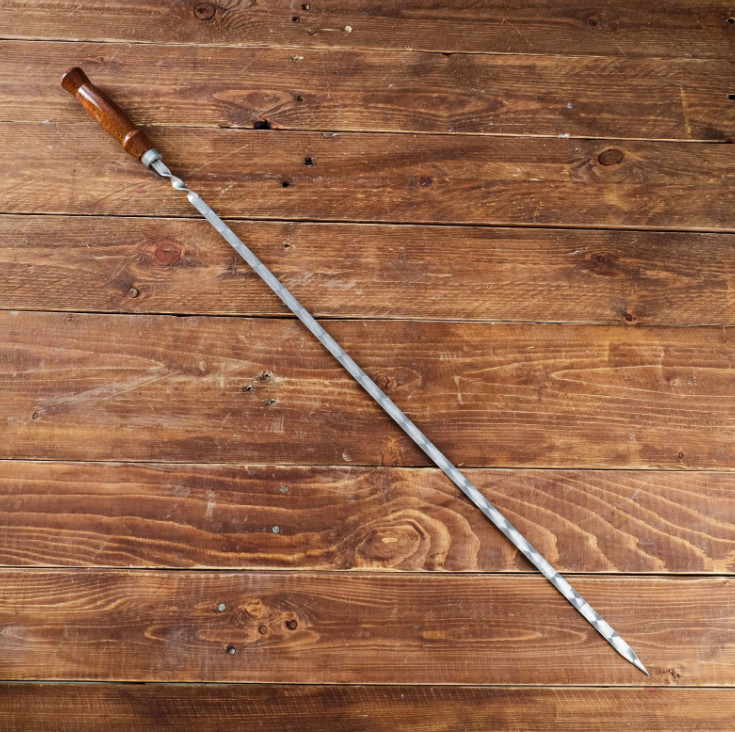 Резная деревянная рукоять не только придает шарм внешнему виду шампура, но и обеспечивает удобный захват и предотвращает ожоги.