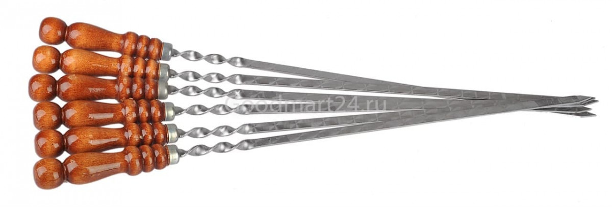 Шампур из нержавеющей стали толщиной 3 мм с деревянной ручкой. На ручке сделана заклепка для защиты ручки от огня и жара из мангала. Рабочая длина шампура 500 мм - Это длина только лезвия. Шампура из стали 3 мм удобны для больших кусков мяса, за счет толщины шампур не гнётся, а нагревшись начинает нагревать мясо внутри. Ручка шампура деревянная - удобная в обращении, покрыта лаком, эстетически - очень красивая, практически - долговечная. За счет витков на лезвии - шампур удобно крутить. На деревянной ручке изготовлена заклепка из металла для предотвращения нагрева шампура.