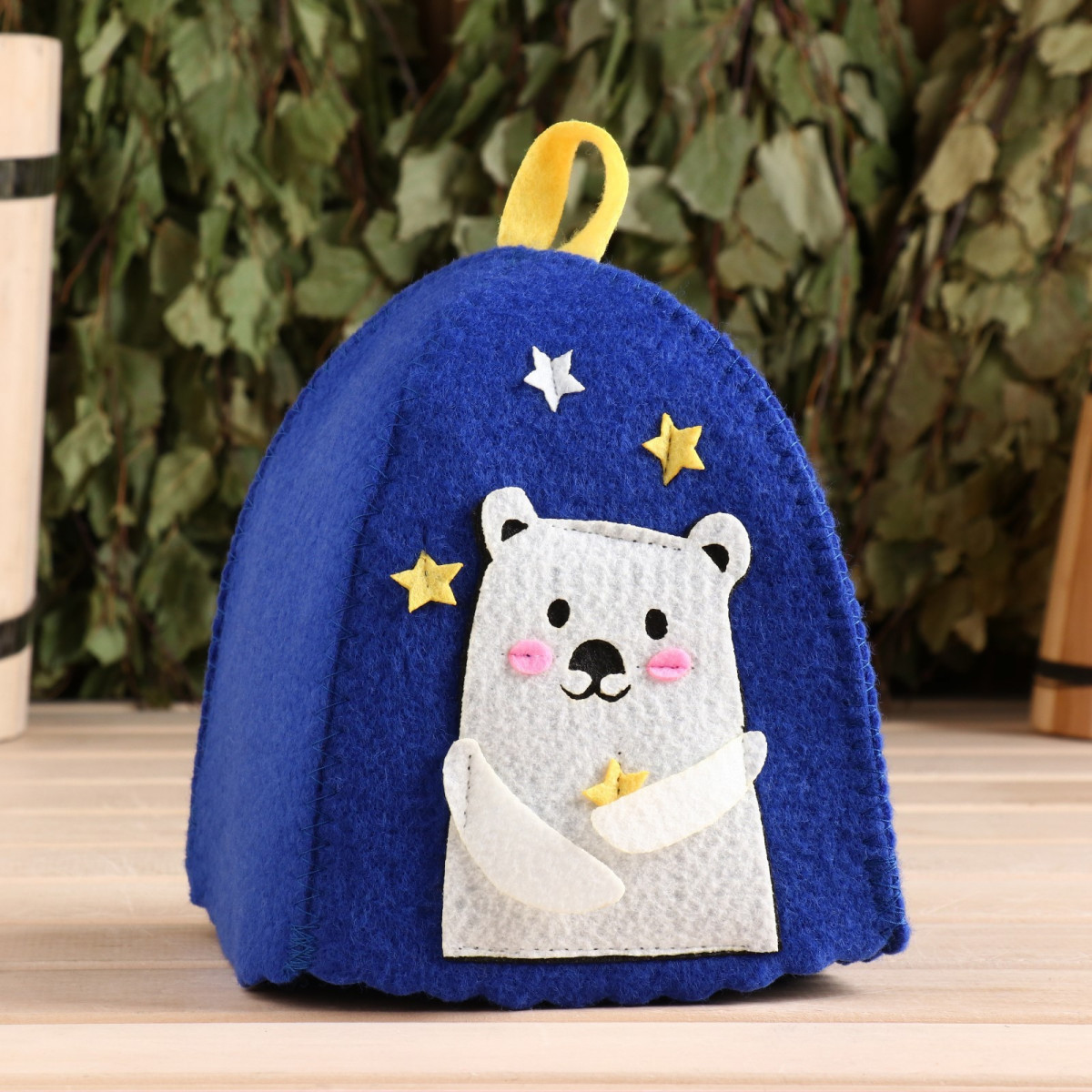Шапка для бани с аппликацией Застенчивый Мишка