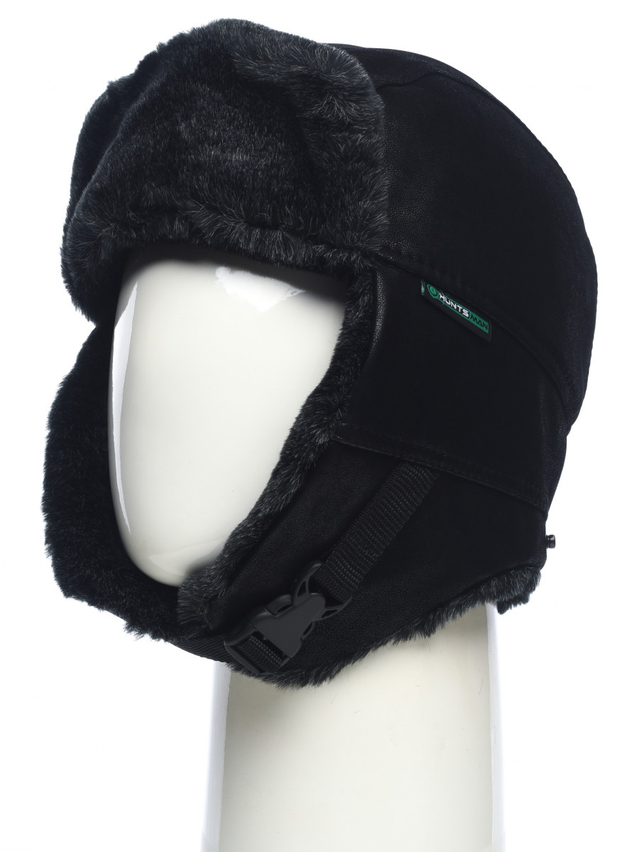 Шапка ушанка зимняя Енисей, черный, замша