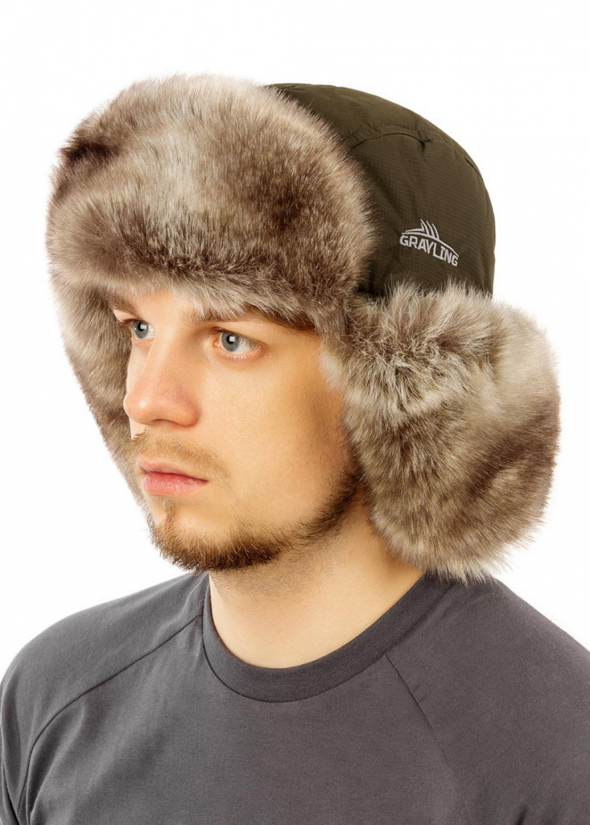 Шапка-ушанка зимняя Nelma/Нельма таслан/хаки GRAYLING