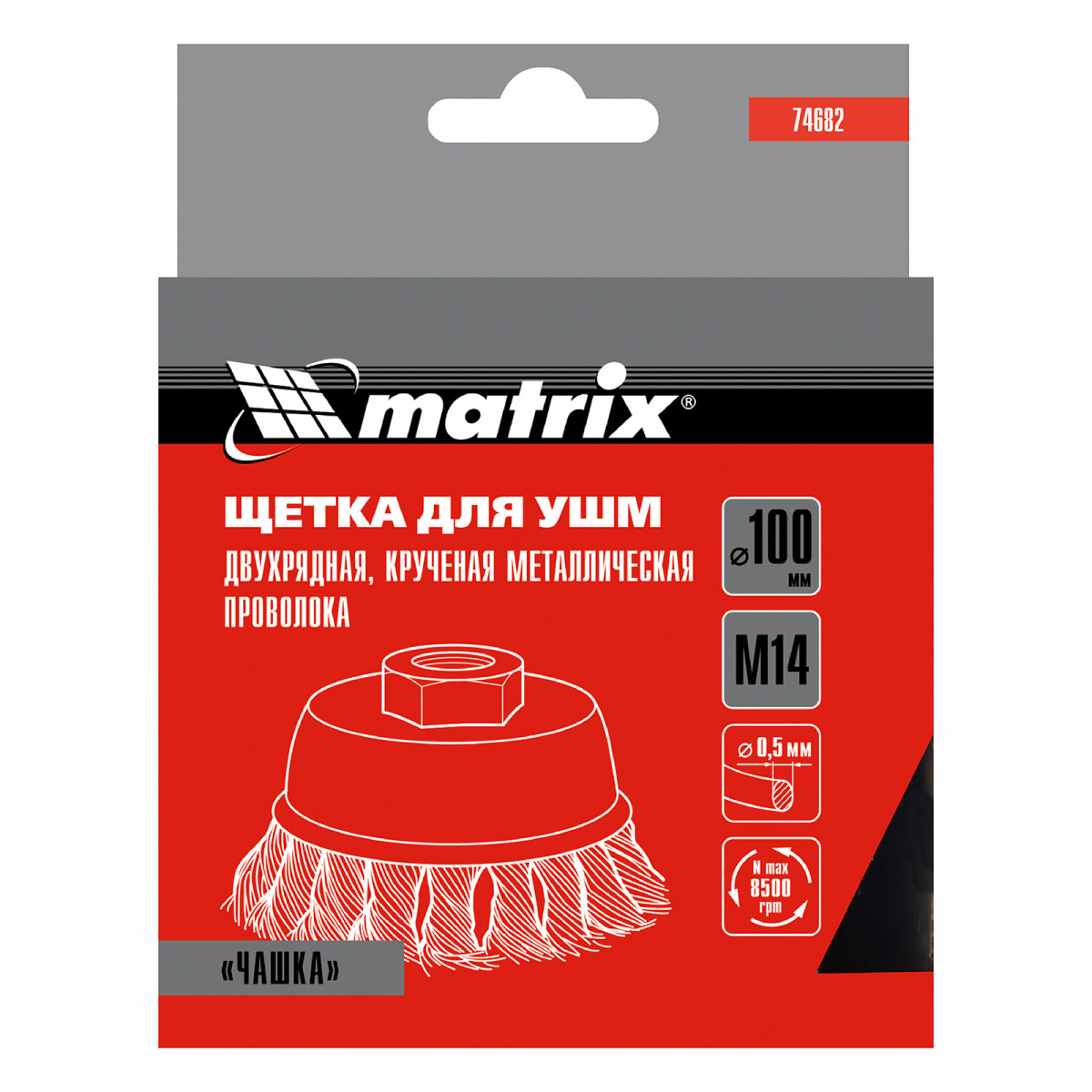 Щетка для УШМ, 100 мм, М14, "чашка", двухрядная, крученая проволока 0.5 мм Matrix