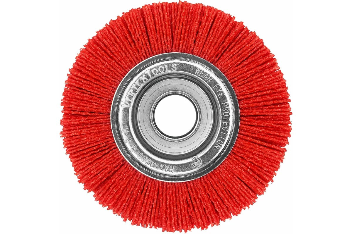 Щетка VERTEXTOOLS 22400-125 позволяет эффективно удалять заусенцы и грязь с различных поверхностей благодаря нейлоновым волокнам.