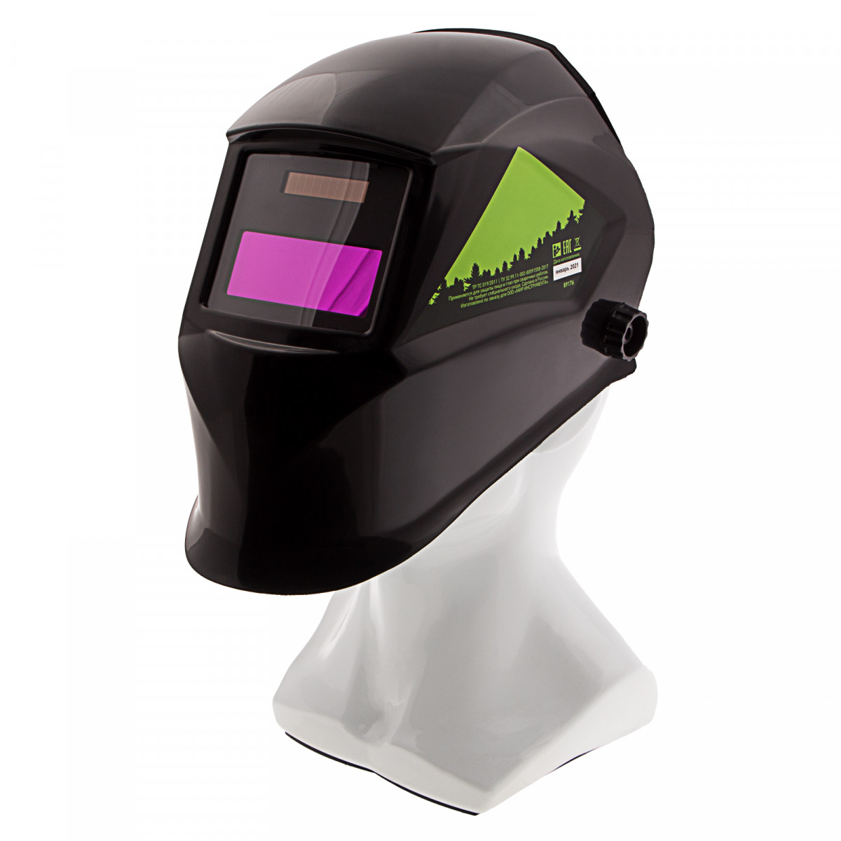 - Удобная посадка на голове — регулируемое оголовье позволяет надежно зафиксировать щиток, чтобы он не спадал во время работы.