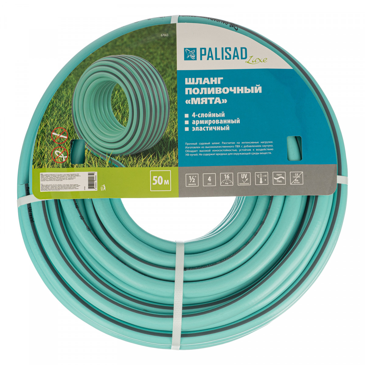 Шланг 4 слойный поливочный 1/2", 50 м Мята, LUXE Palisad