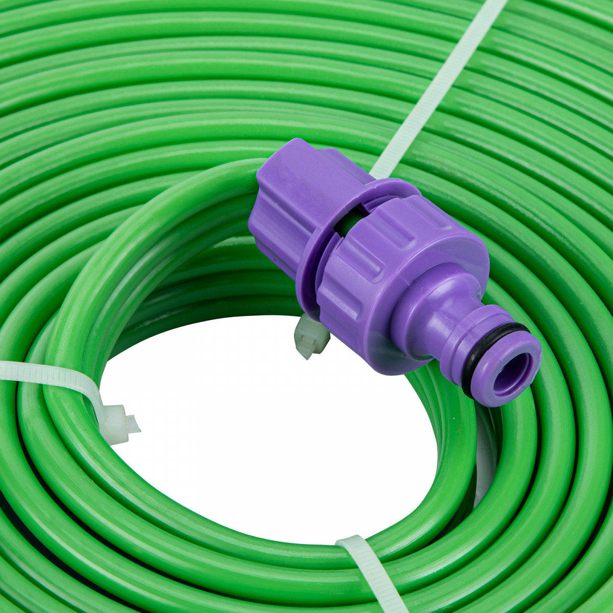 Прочный и долговечный шланг из ПВХ сохраняет форму и не разрушается под воздействием УФ-лучей и перепадов температур.