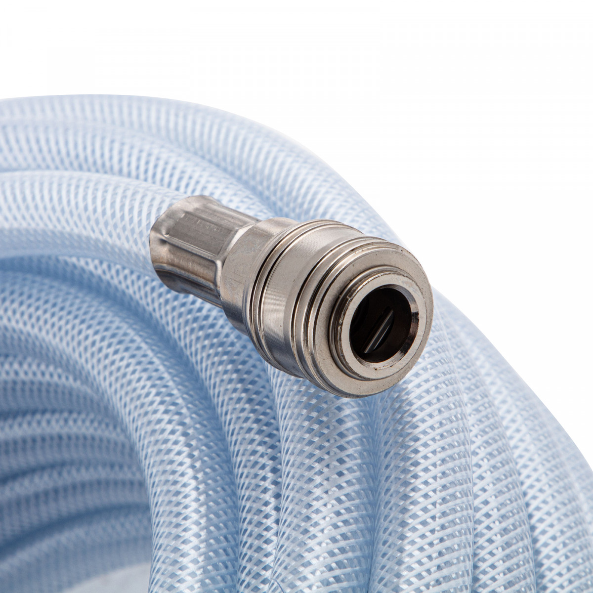 Шланг пневматический ПВХ, 10 x 16 мм, 18 бар, армированный, прозрачный, быстросъемное соединение, 15 м Stels