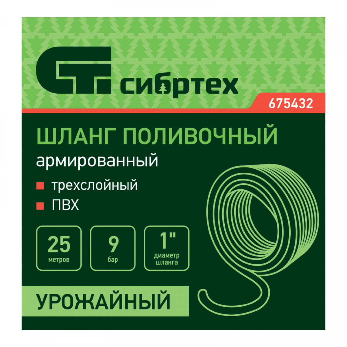 Шланг поливочный армированный ПВХ 1", 25 м, урожайный Сибртех